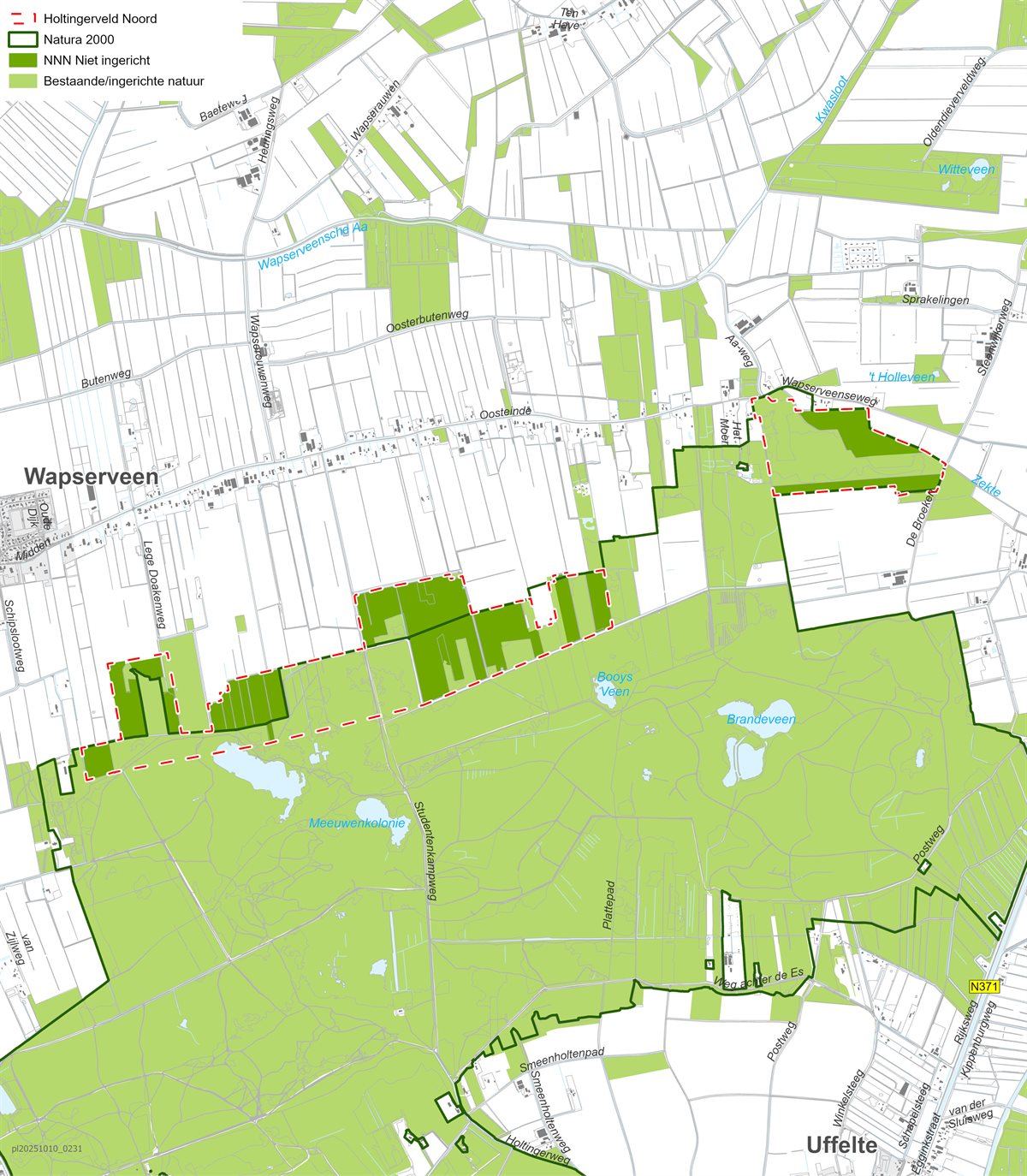 Ten noorden van het Holtingerveld liggen, naast Wapserveen en Wittelte, twee gebieden die samen Holtingerveld-Noord vormen. Voor dit gebied heeft provincie Drenthe een opgave voor het inrichten van nieuwe natuur als onderdeel van het Natuurnetwerk Nederland (NNN).